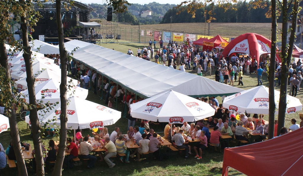 - zapewnienie o zabezpieczeniu 1000 miejsc konsumpcyjnych siedzących z zadaszeniem na imprezę "Dożynki Gminne".