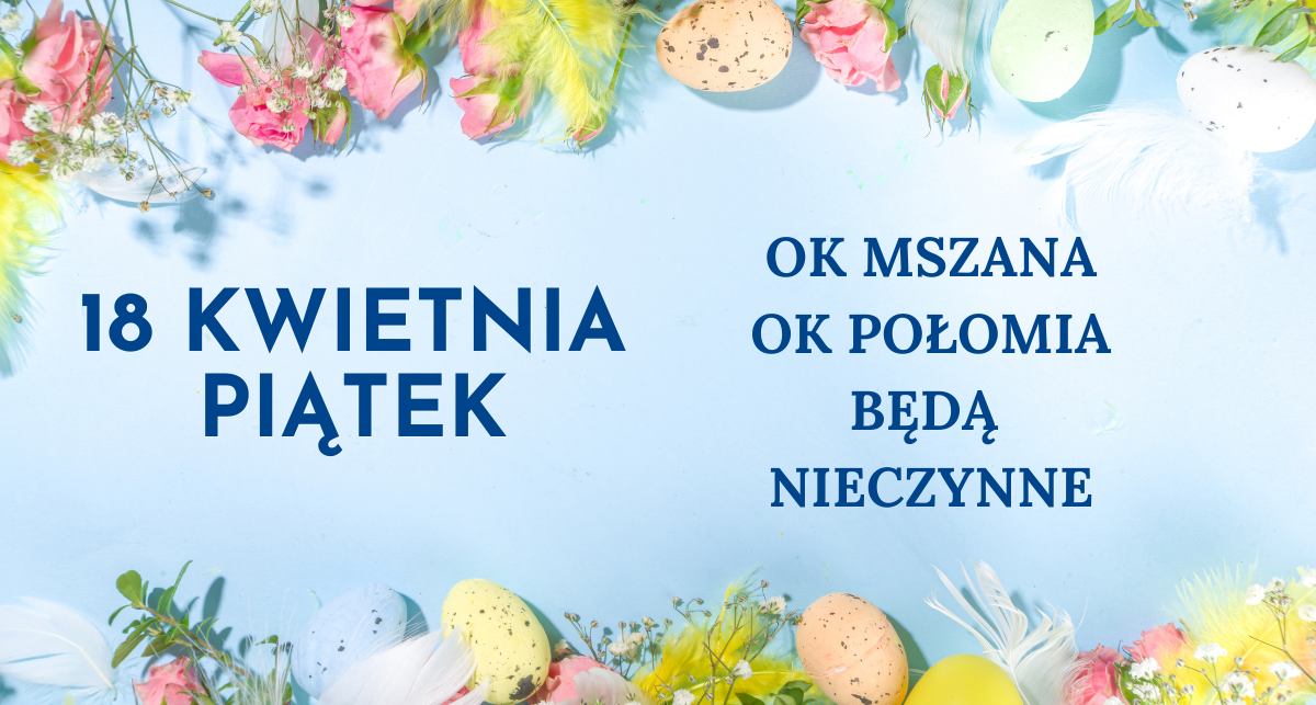 Od piątku 18 do 21 kwietnia, Gminny Ośrodek Kultury i Rekreacji w Mszanie oraz Ośrodek Kultury w Połomi będą nieczynne.