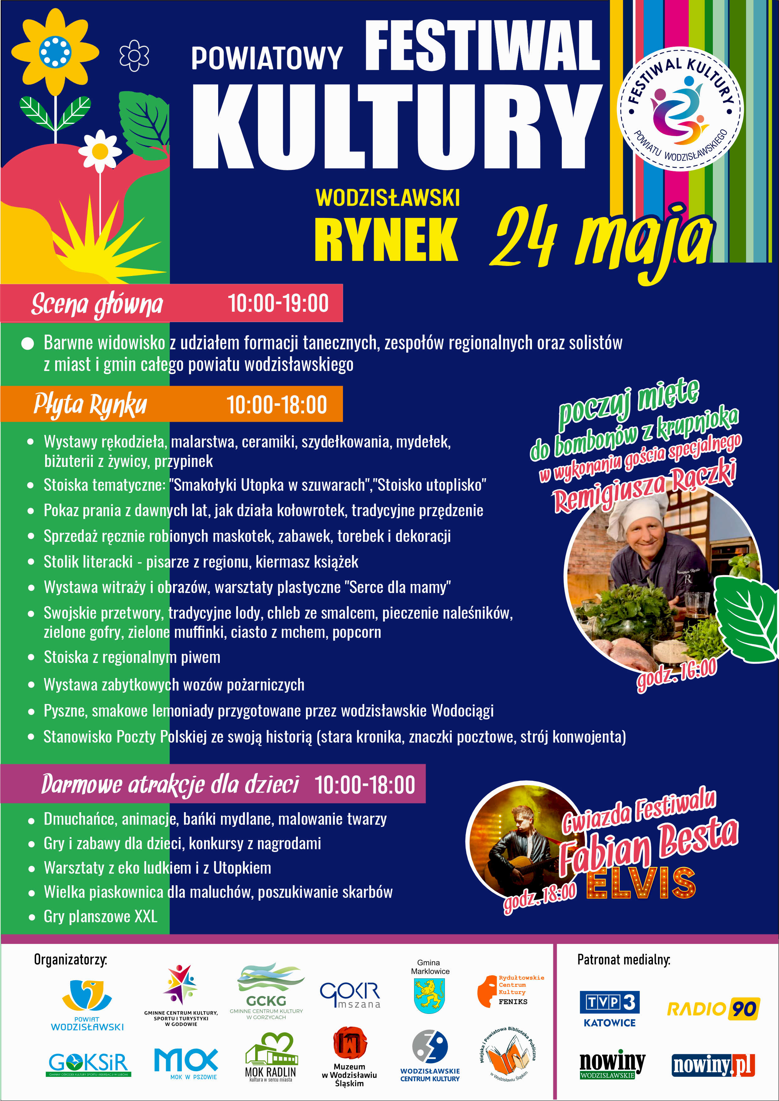 GOKiR Mszana zaprasza wszystkich mieszkańców 24 maja o godz. 10:00 na Rynek w Wodzisławiu Śląskim, gdzie odbędzie się Powiatowy Festiwal Kultury.