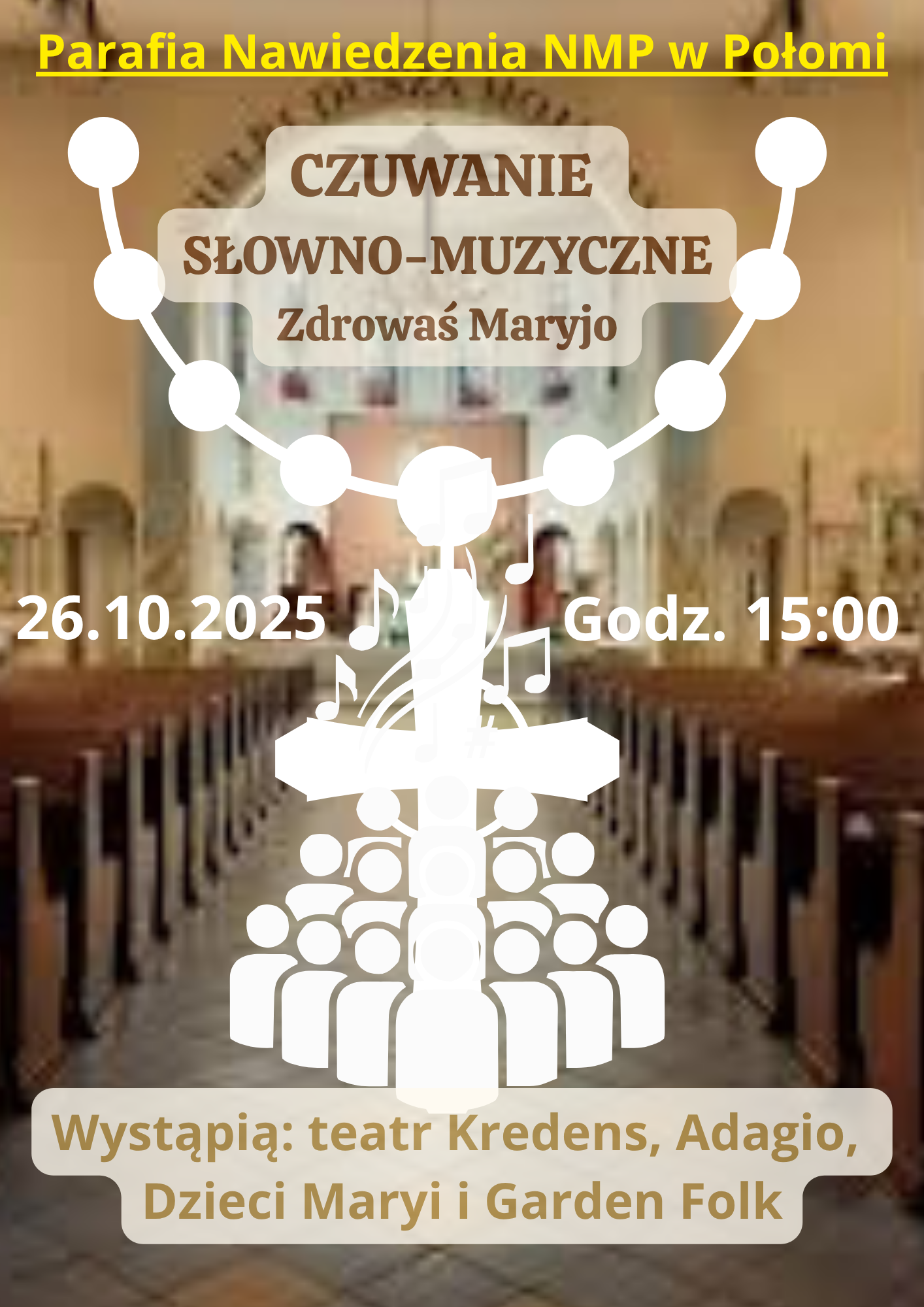 Już 26 października (niedziela) o godz. 15:00 w Kościele parafialnym pw. Nawiedzenie Najświętszej Maryi Panny w Połomi odbędzie się wyjątkowe Czuwanie Słowno-Muzyczne