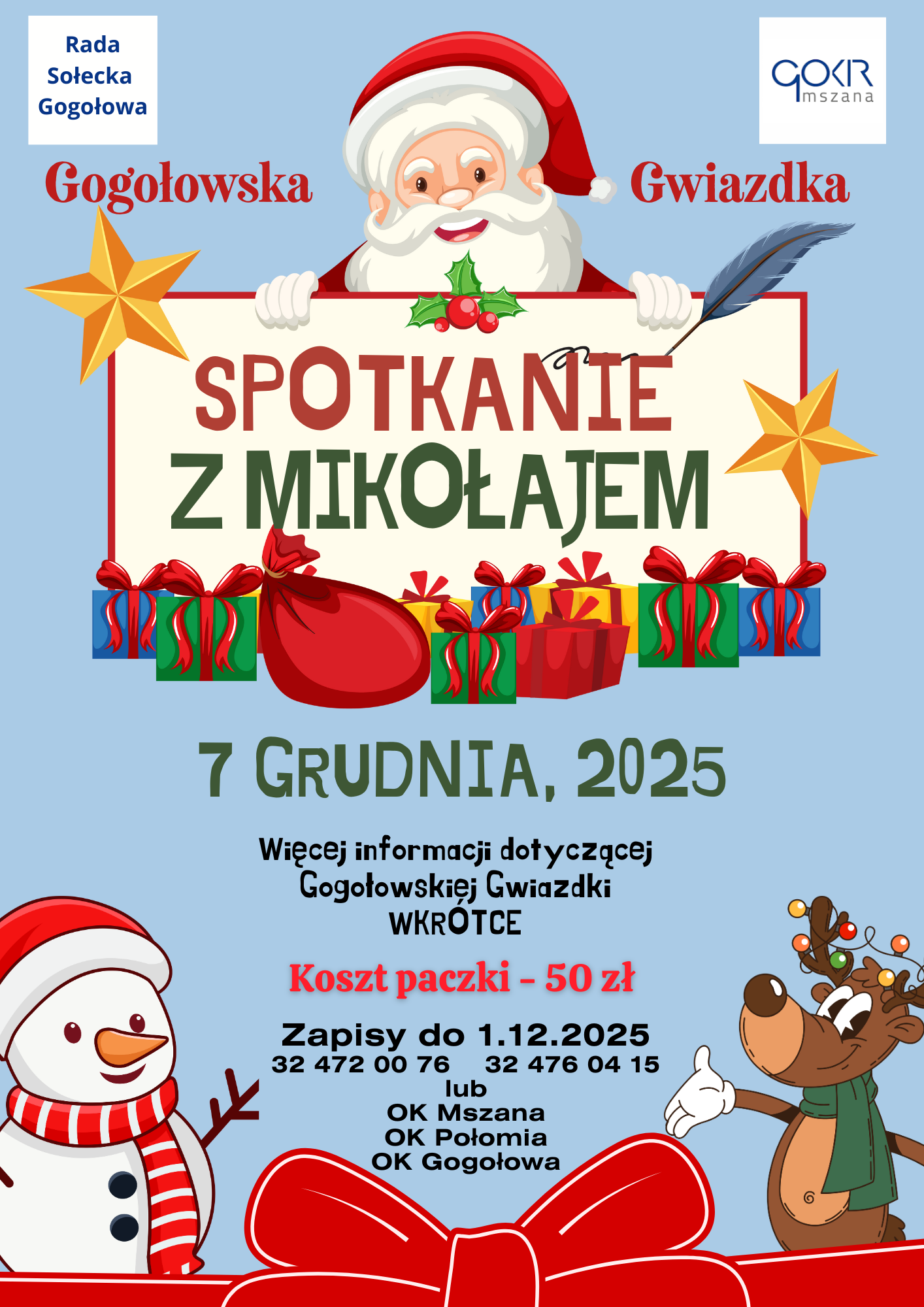 GOKiR Mszana zaprasza wszystkie dzieci naszej gminy na spotkanie z MIKOŁAJEM.